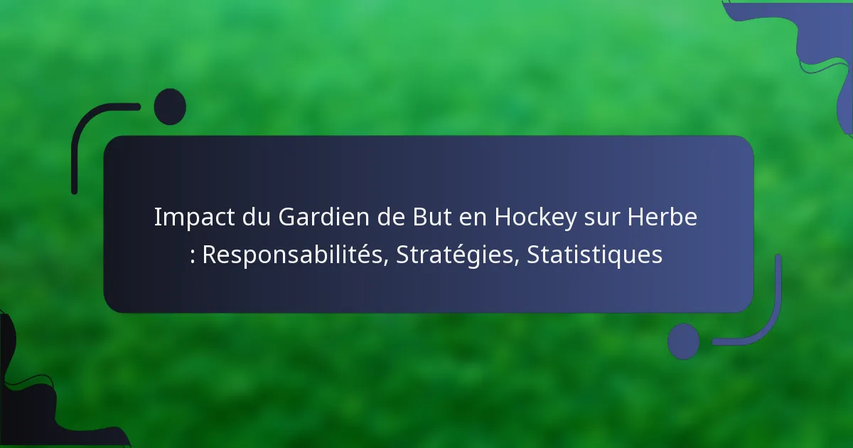Dans le hockey sur gazon, le gardien de but joue un rôle central tant en défense qu’en attaque, chargé d’empêcher les buts tout en facilitant les occasions de marquer. En maîtrisant ses responsabilités et en employant des techniques stratégiques, les gardiens peuvent influencer de manière significative l’issue du match. L’analyse des statistiques de performance clés met en évidence leur impact sur le succès de l’équipe et leur efficacité globale.